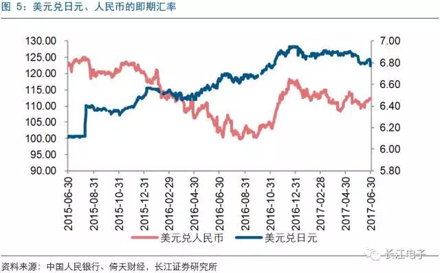 内地被动元器件企业主要竞争对手来自日本和台湾,对于通常以美元作为款项结算的元器件行业而言,成本上升。近年以来,新台币兑美元比较稳定,人民币贬值趋势延续,同期日元兑美元处于升值通道。因此国际竞争市场中,同规格产品较以往天然拉开20%以上价差。