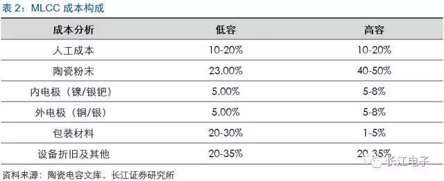 陶瓷粉末及电极金属成本大幅提升