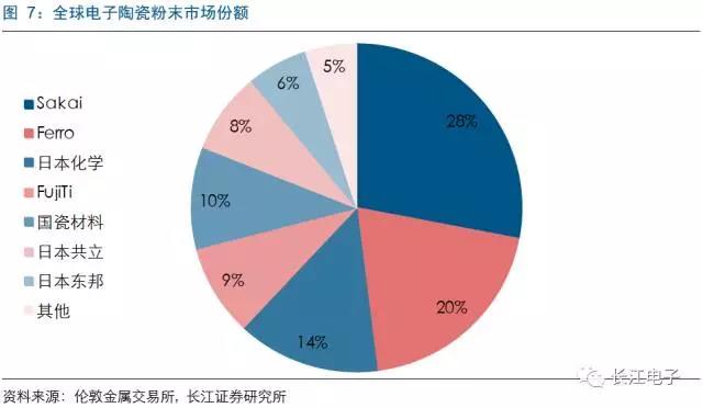 国内普通陶瓷粉末已实现自给自足,但特殊功能型粉末主要采购自美国Ferro、日本Sakai、Kyoritsu等,日企份额超过75%,其中Sakai市占率超过30%。